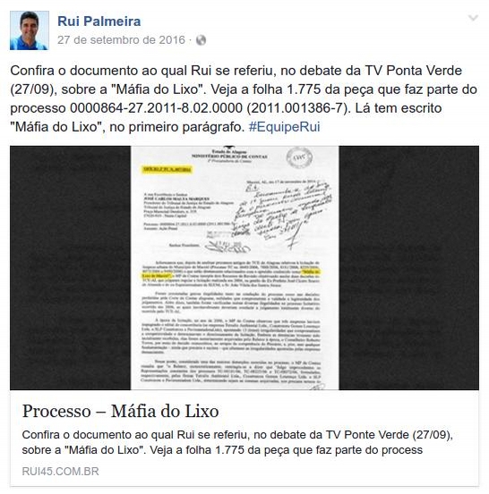 Mediación de la información y la comunicación política en el Facebook: el desempeño del candidato Rui Palmeira en la disputa por el ayuntamiento de Maceió en 2016